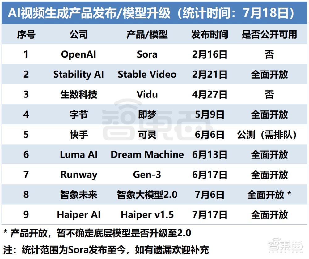 ▲AI视频生成产品发布/模型升级(智东西制表)