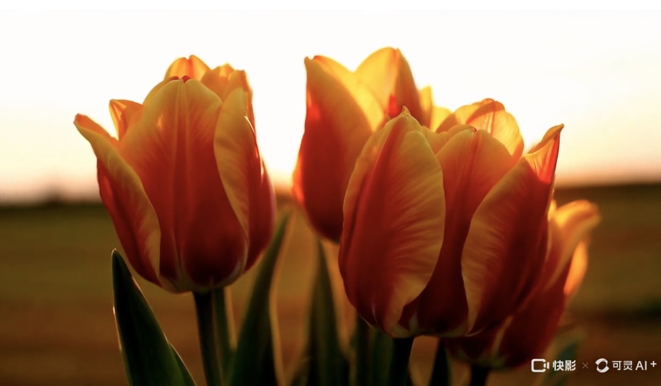 可灵生成的视频把“特写”这一提示词展现到了极致,同时画面清晰度较高,还刻画出了花瓣上的纹理。不过话说回来,对“郁金香的特写”该如何理解,本身也不是一个有固定答案的问题,所以也说不上谁对谁错。