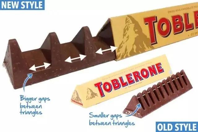 2014年,应用经济学家查克尔和巴拉格塔斯的研究表明,消费者对产品价格的敏感度大概是对产品大小敏感度的4倍。这意味着,相对于直接涨价,选择减少产品分量更不容易被消费者发现。而基于这一理论出现的“变相涨价”案例,还有著名的瑞士山峰巧克力(Toblerone)相邻的“山峰”间距越来越大,易拉罐装的可口可乐容量从355毫升减少到330毫升。
