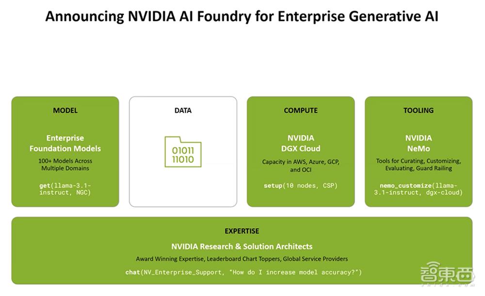 智东西7月24日报道,NVIDIA宣布推出全新NVIDIA AI Foundry服务和NVIDIA NIM推理微服务,与刚推出的Meta Llama 3.1系列开源模型一起,为全球企业的生成式AI提供强力支持。