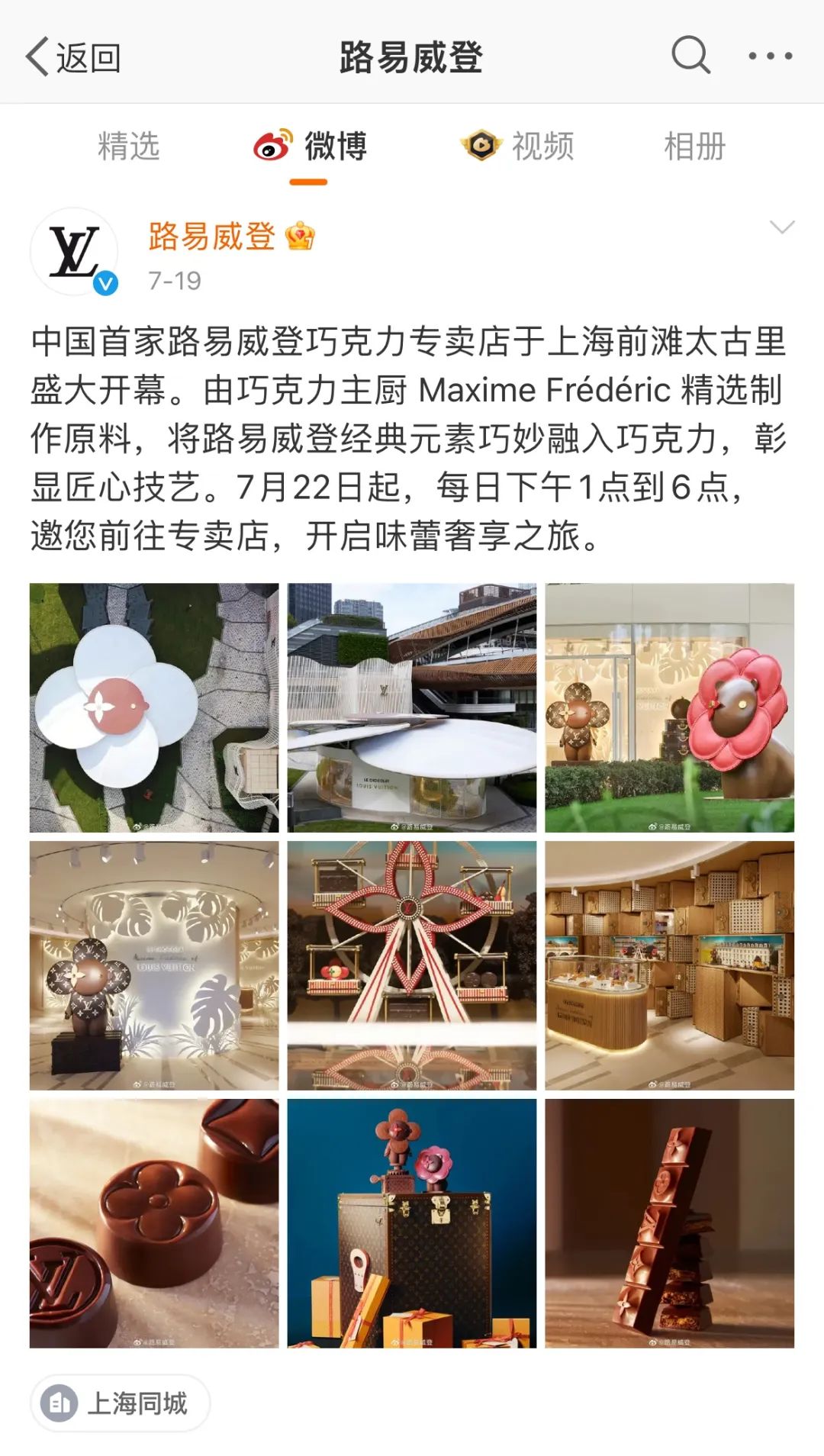 这家店位于上海前滩太古里,是LV继巴黎、新加坡后开出的第三家巧克力专卖店,7月22日起开始营业。