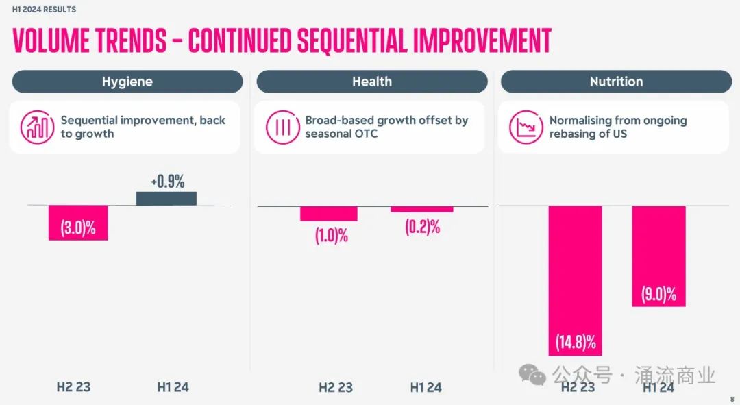 2023年,利洁时营养品在发达的北美市场表现更好,发展中市场业务出现了中个位数下降,因为出生率在下降、母乳喂养率提高,以及涨价后、一些第三阶段产品被更便宜的替代品取代。