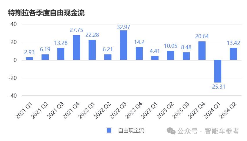 二季度自由现金流为13.42亿美元(折合人民币约为97.64亿元),同比增长33.5%,相比一季度现金流-25.31亿美元(折合人民币约184.15亿元),跌至负值的状况,好太多了。