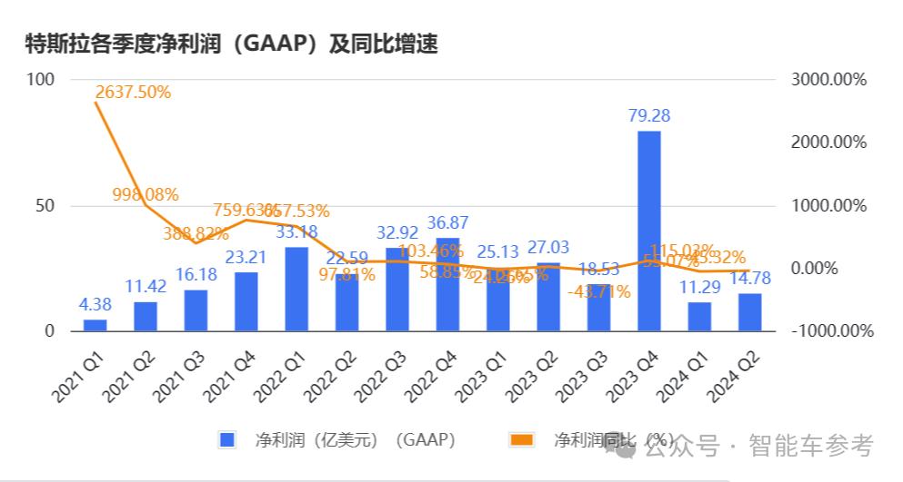 比较糟糕的是,特斯拉GAAP归母净利润,相比去年同期几乎腰斩,为14.78亿美元(折合人民币约为107.5亿元),同比暴跌45%,但比一季度环比大涨了30.9%。