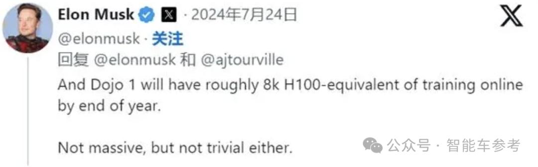 年底Dojo 1号将提供相当于8000张H100的云端算力。