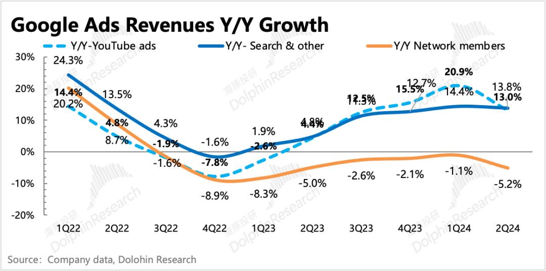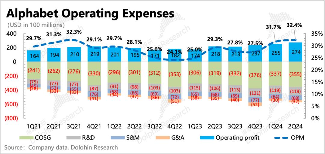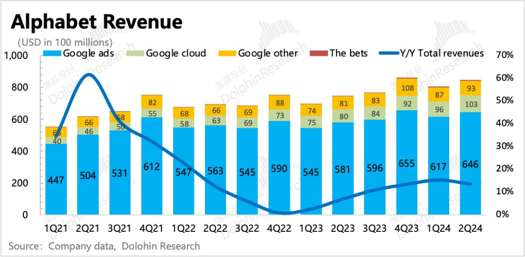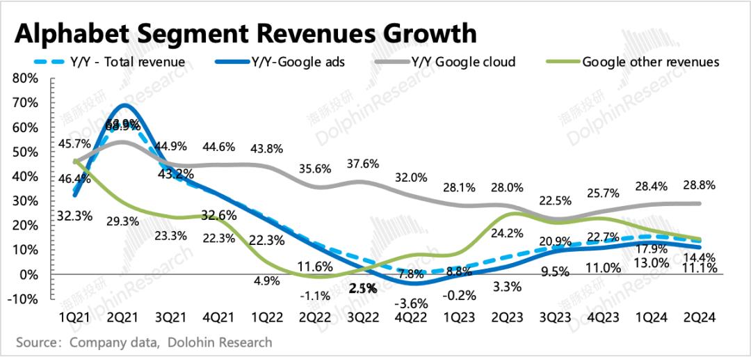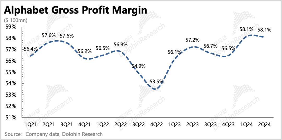 (3)其他业务:二季度增速进一步放缓,同比增长14%。这部分收入主要由YouTube订阅(TV、音乐等)、Google Play、Google、One、硬件(手机Pixel和智能家电Nest)等组成。