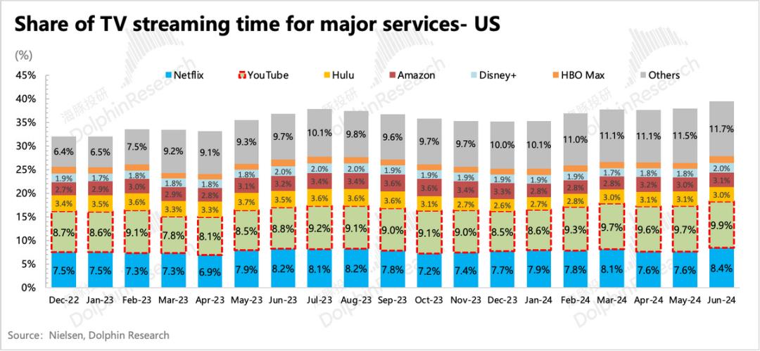 此外YouTube TV可能也受到了来自Netflix和Amazon prime的影响。虽然YouTube TV的收视份额持续有优势,但Netflix和Amazon Prime TV以往并没有推行广告变现,因此过去并不存在广告上的竞争,但现在YouTube TV也需要打起精神应对。
