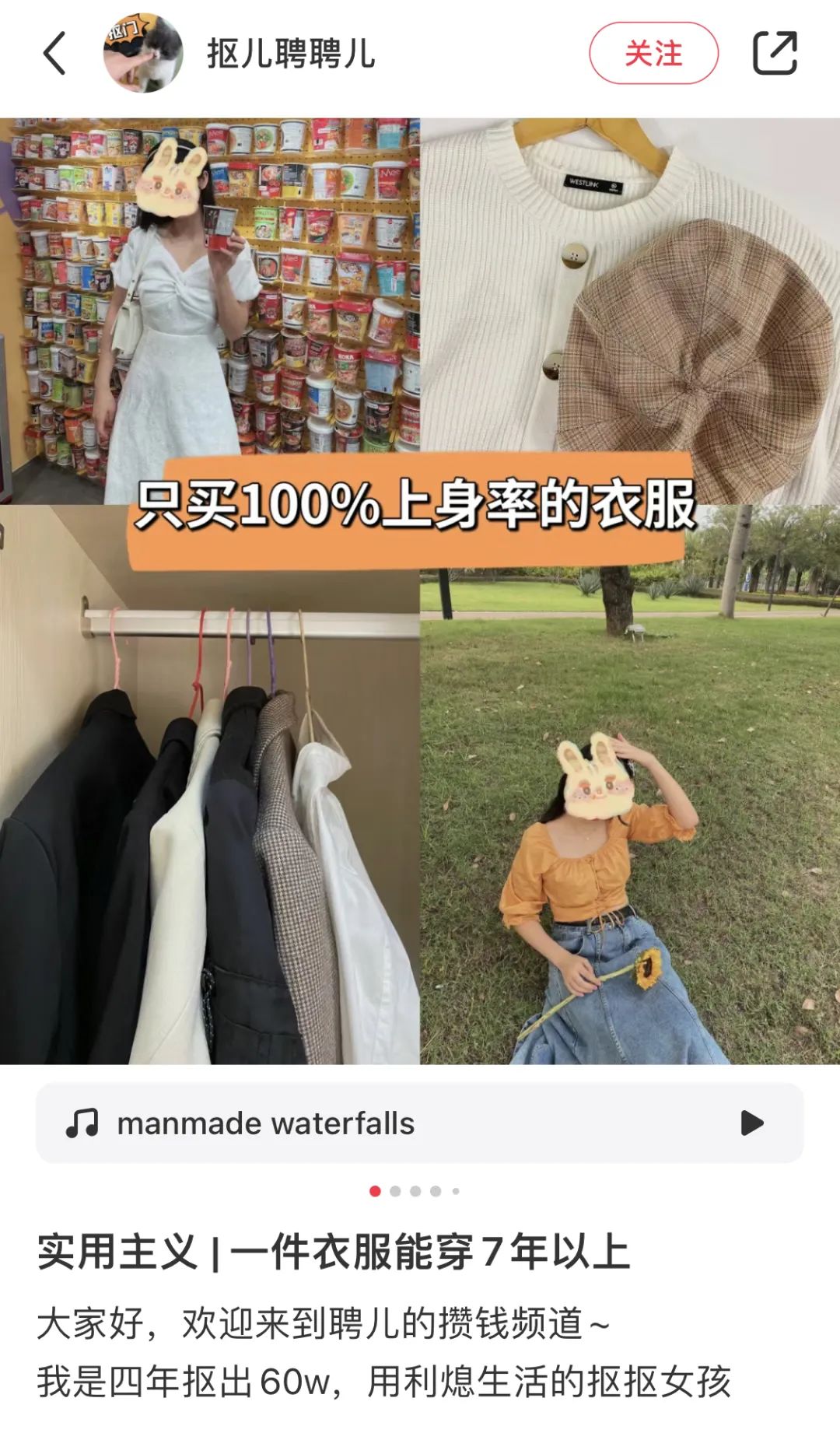 博主抠儿每月花销不超过2000元,但不影响她做穿搭博主,穿着百十块的衣服,出街时照样被摄影师邀请做模特。她说很多人误以为穿搭好看就要买潮牌,其实关键在于了解自己身材的特点扬长避短。