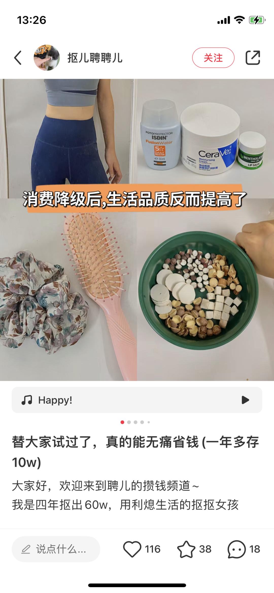 图 | 博主抠儿的攒钱日常会享受独处时光