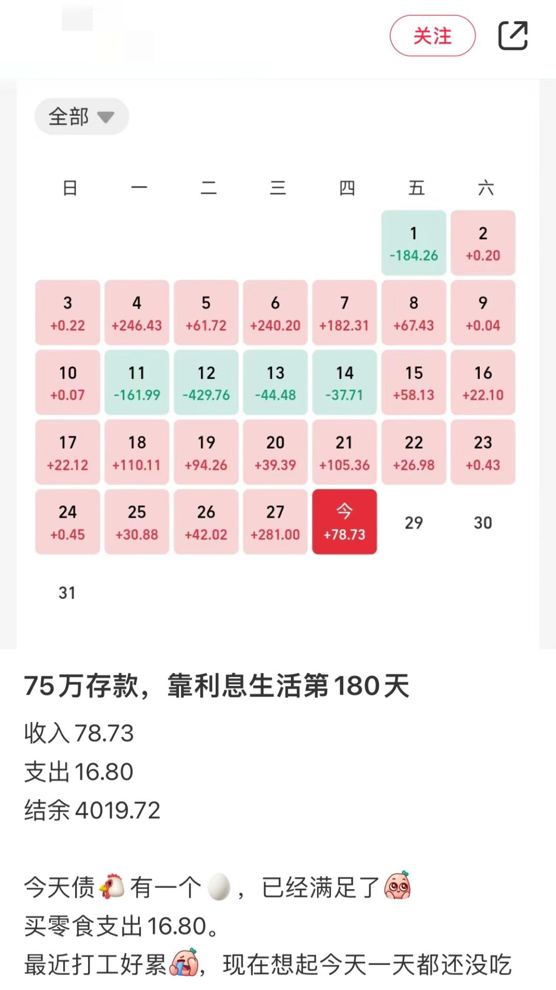 图 | 用利息生活之后,博主开源养成每周末算账的习惯