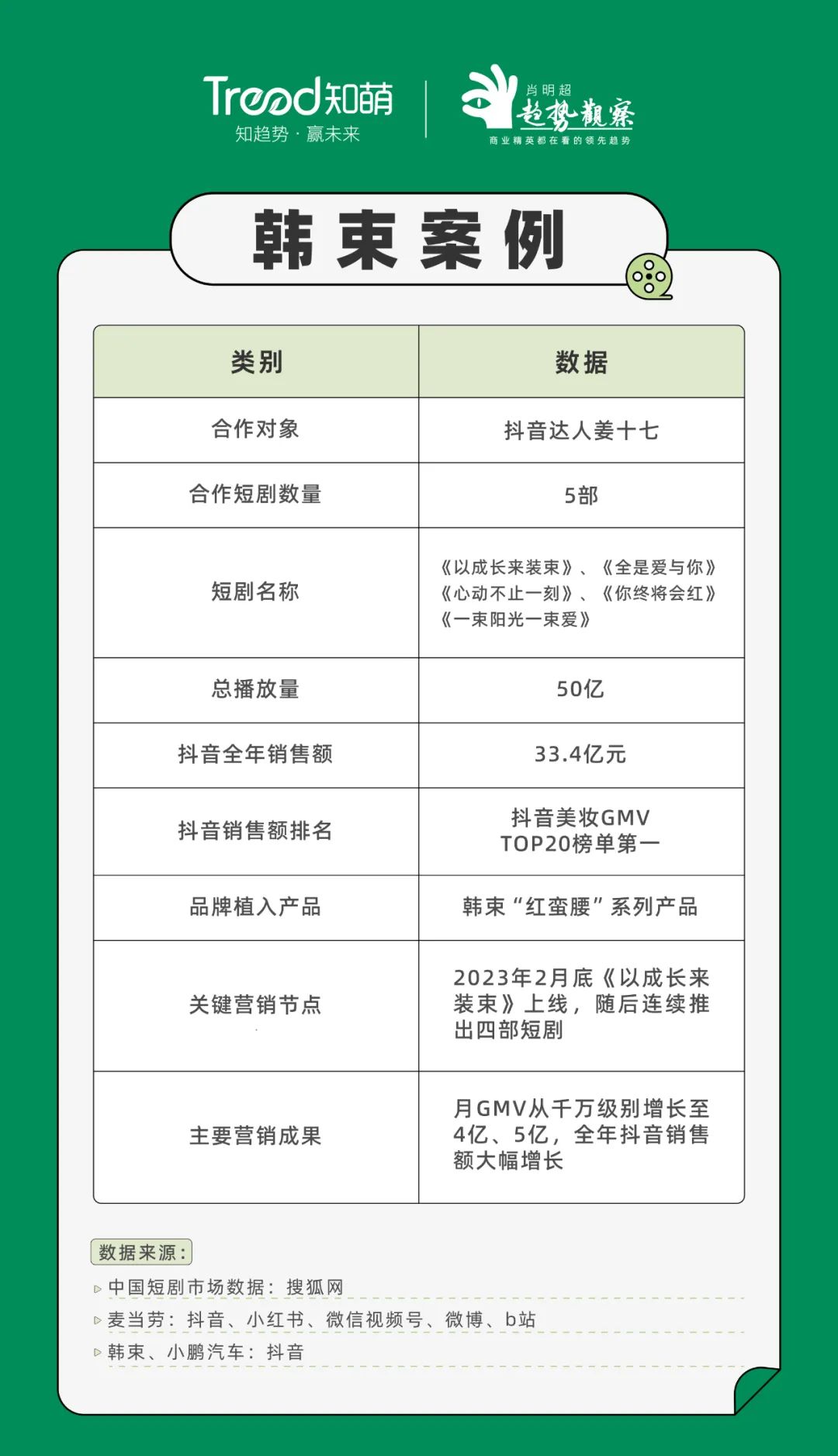 韩束通过定制短剧与抖音达人姜十七合作,推出了一系列如《以成长来装束》、《你终将会红》等短剧,成功将品牌理念与产品特点融入剧情,实现了品牌传播与销售的双重提升。