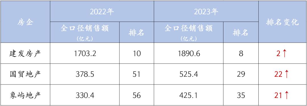 更猛的国贸地产,2023年排名上涨22位,销售额大涨38.8%;