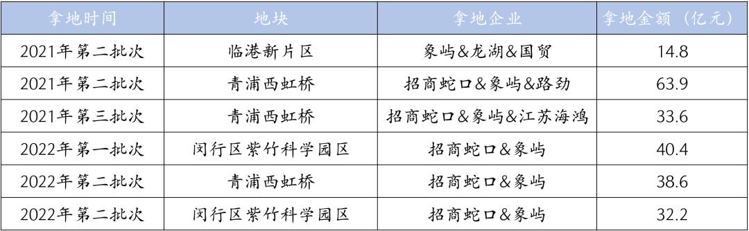 根据不完全统计,2021年至今,象屿(包括联合体)在上海拿了不下13宗地。