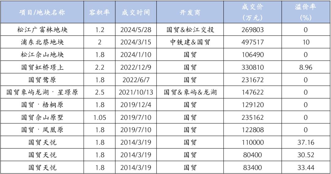 直到今年年初低价捡漏,以0%溢价拿下佘山北宅地,至此国贸也拿到了自己位于松江的第9个住宅地块。