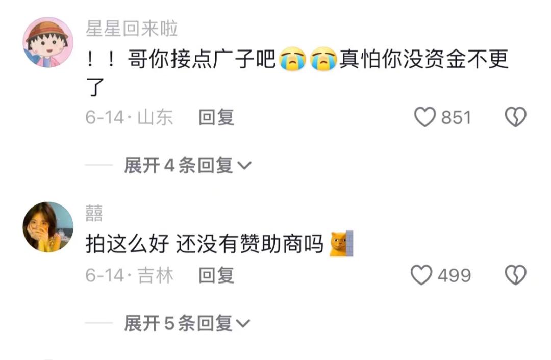 更多的,在其他大学生自制综艺如《奔跑吧大学生》《如花与少年》等评论区,也能够看到观众的“担忧”:好怕没钱不更新了。但这可能就是真相。