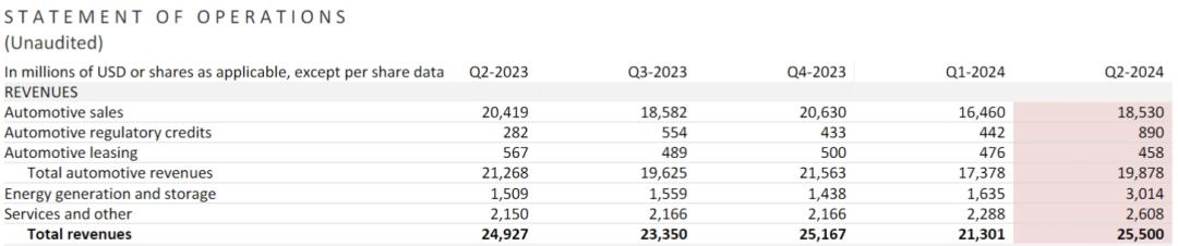 在一季度收入出现 8.7% 的下滑后,特斯拉本季度收入实现扭转,重回增长。二季度收入达到 255 亿美元,同比增长 2.3%,其中汽车业务收入下滑,但能源生产和储存,以及服务( 售后保养、保险等 )收入增长。