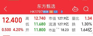 一同下跌的,还有东方甄选的市值。2023年1月20日,东方甄选达到市值巅峰742.1亿港币,如今,东方甄选的市值为127.9亿港元。