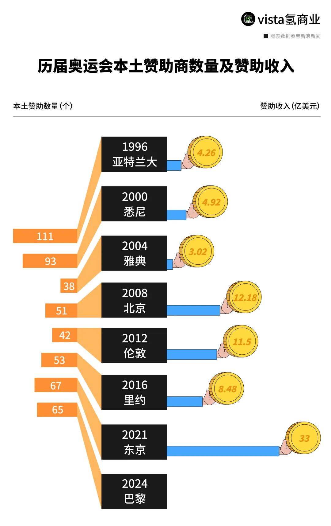 虽然按本土企业数量来看,巴黎招到了65家本土赞助商,只比东京奥运的67家日本企业少两家,但后者给东京奥运输血33亿美元,助其成为史上赞助收入最多的奥运。