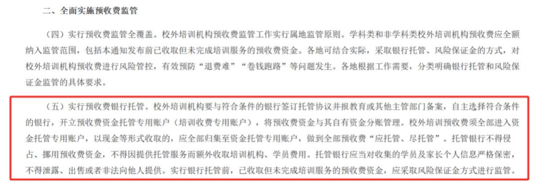 来源:教育部等六部门关于加强校外培训机构预收费监管工作的通知