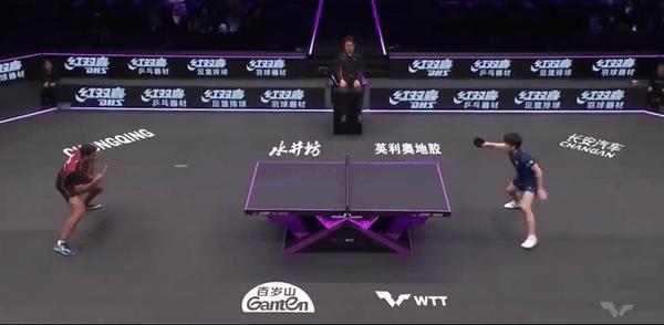 ▲巴黎奥运会乒乓球赛场“会变色”的彩虹球台(图源:新华社)