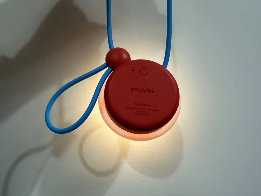 红色底座上的绑带可以调节大小,方便孩子将BubblePal系在自己的手上,并且只需要按压上方的白色“蘑菇顶”,就可以与之交流。高峰谈道,这种按键式触发交互的方式BubblePal,能让低龄儿童也轻松使用。他还透露,他们未来也会尝试测试语音唤醒的方式。