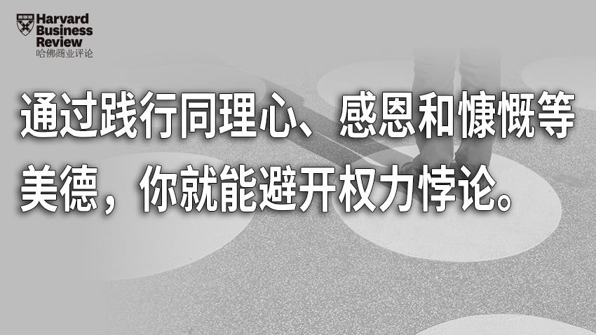 通过践行同理心、感恩和慷慨等美德,你就能避开权力悖论。你将能激发身边人们的协作精神,实现最佳成果。你本人当然也会受益:声誉越来越高,领导地位保持稳固,并享受增进他人利益所带来的纯粹愉悦。