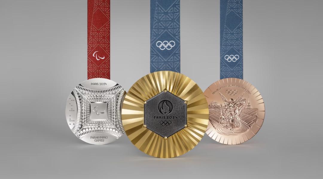 在2024年2月,巴黎奥运会主办方公布了珠宝商 Chaumet 设计的奥运奖牌,我们可以看到,奥运会和残奥会的奖牌中间镶嵌着一个六边形铁块,这块重18克的铁可不是普通的铁,而是真实的埃菲尔铁塔的残骸。