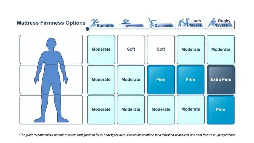 譬如,大部分的游泳运动员都体型都比较纤细,因此他们分配到的床垫模块会比较偏软。