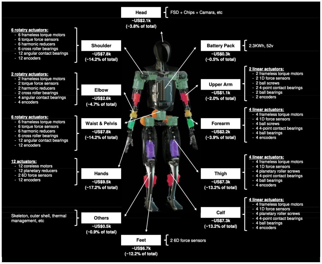 图:擎天柱机器人零部件成本拆解,Morgan Stanley