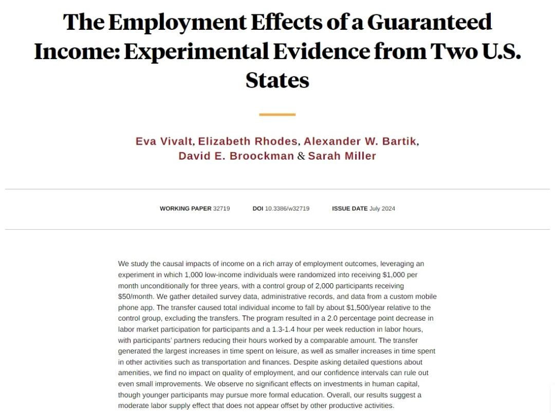 最近公布初步研究结果,基本收入的确能让某些人享受更多自由感,压力也减轻,但效果有限。