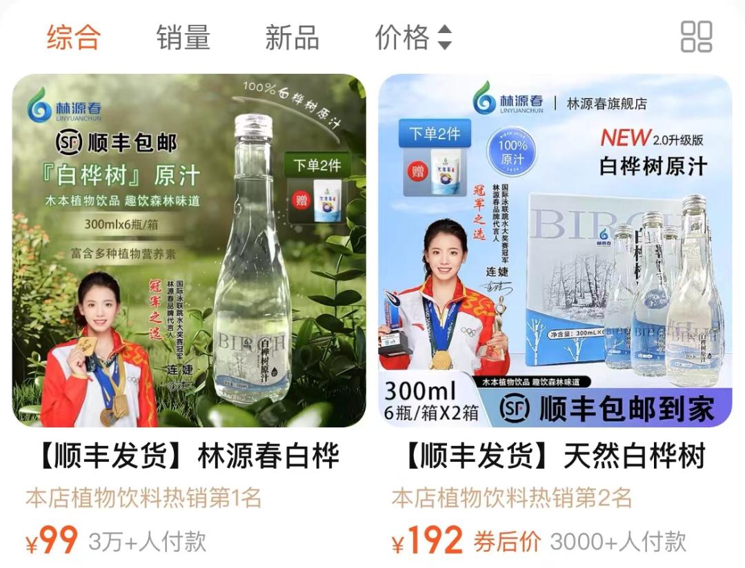 今年3月30日,一个名为林源春的品牌在抖音开启了第一场带货直播,主要带货商品正是“100%白桦树汁”饮料。