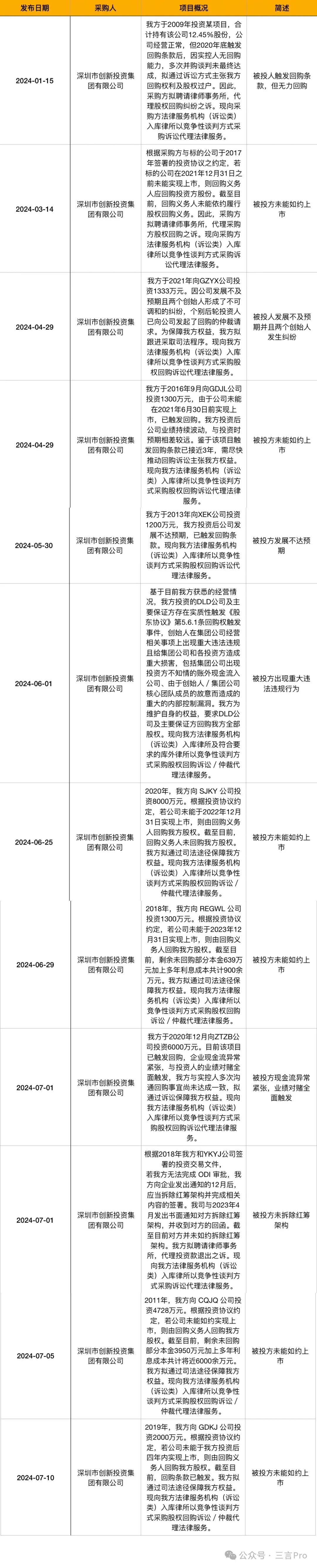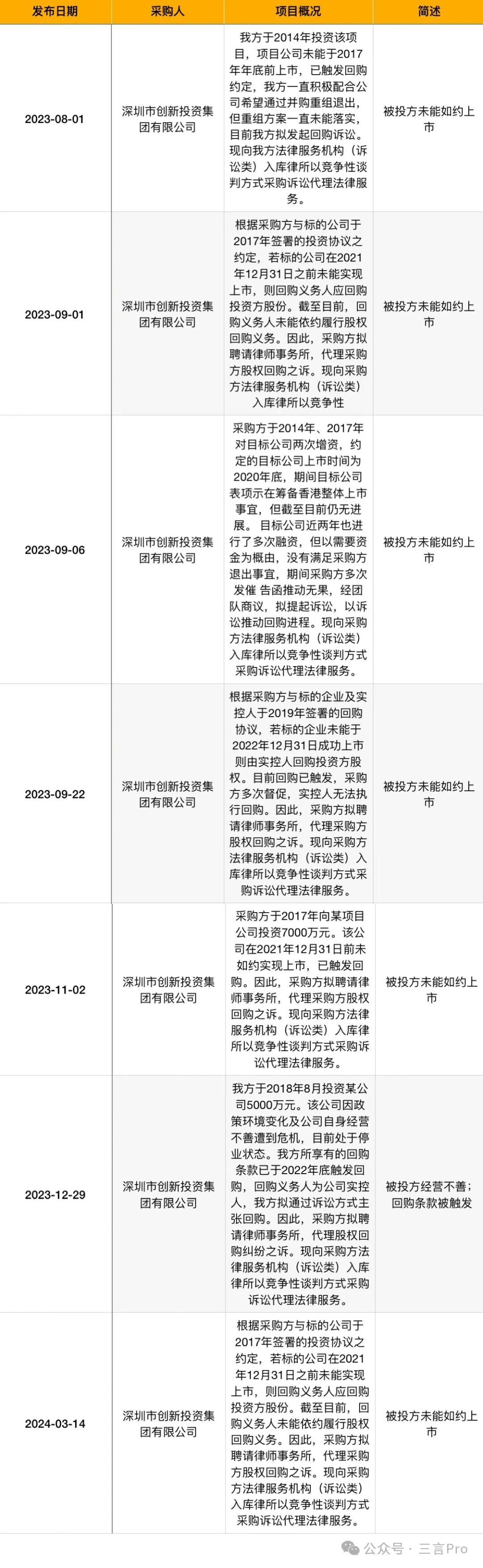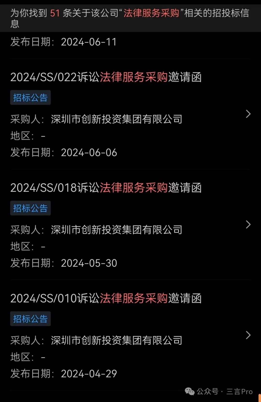 深创投密集发布几十起诉讼法律服务采购招标邀请函