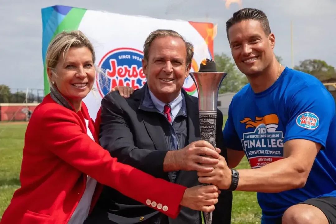 手持火炬: 2022年,坎克罗和他的妻子塔蒂亚娜在新泽西州参加特奥会。 Jersey Mike 's在那一年帮助筹集了2000万美元,它在1976年第一次赞助了该活动,当时坎克罗还是个十几岁的孩子。 图片来源: JERSEY MIKE'S