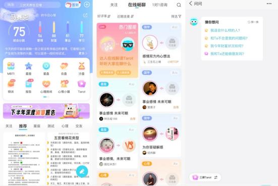 同时,根据问卷调查显示,相较线下占卜,线上占卜更胜一筹,满足年轻人在家“躺平”、思考人生时的需求,还具有便捷、灵活、隐私性好等优点。