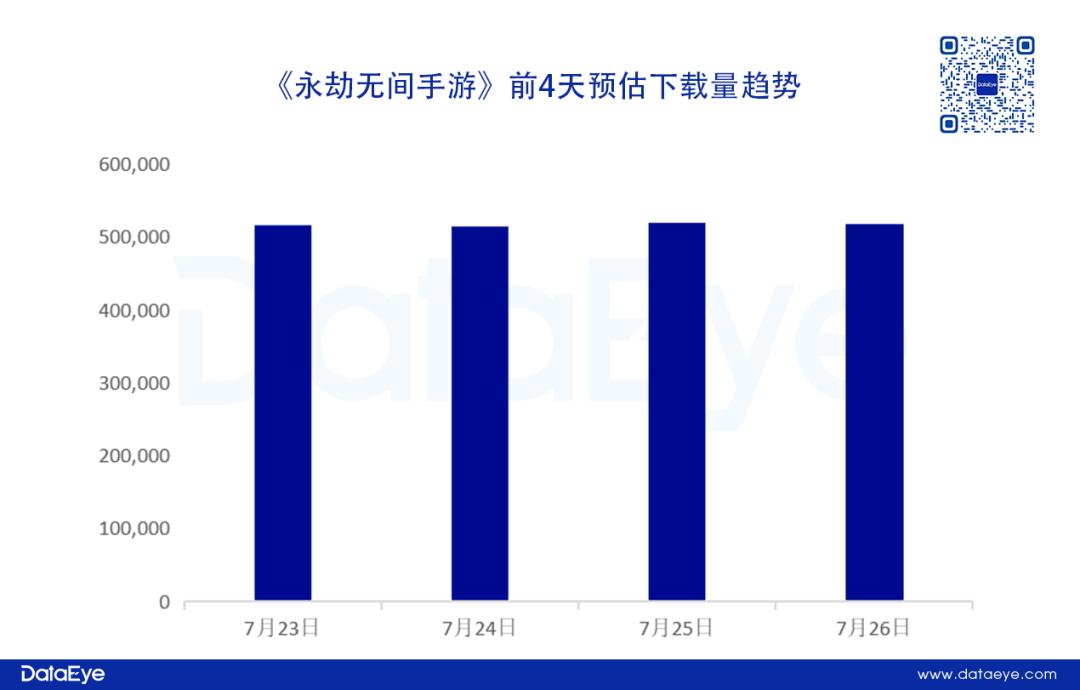 《永劫无间手游》在上线前2天就开放预下载,7月23—24日预下载阶段,iOS日均下载量可达51万次,而在产品上线后,下载量得以保持,同时 免费榜排名在预下载开启后就保持霸榜态势。