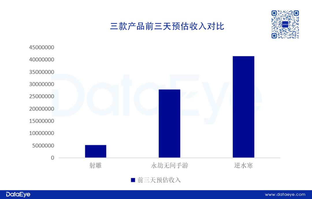对比来看,同为网易今年的武侠题材,《射雕》上线前3天的预估收入合计约为510万人民币,《永劫无间手游》与其形成了相对明显的差距。可是对比另一款武侠王牌产品,《永劫无间手游》前三天预估收入仅为《逆水寒》手游的2/3。