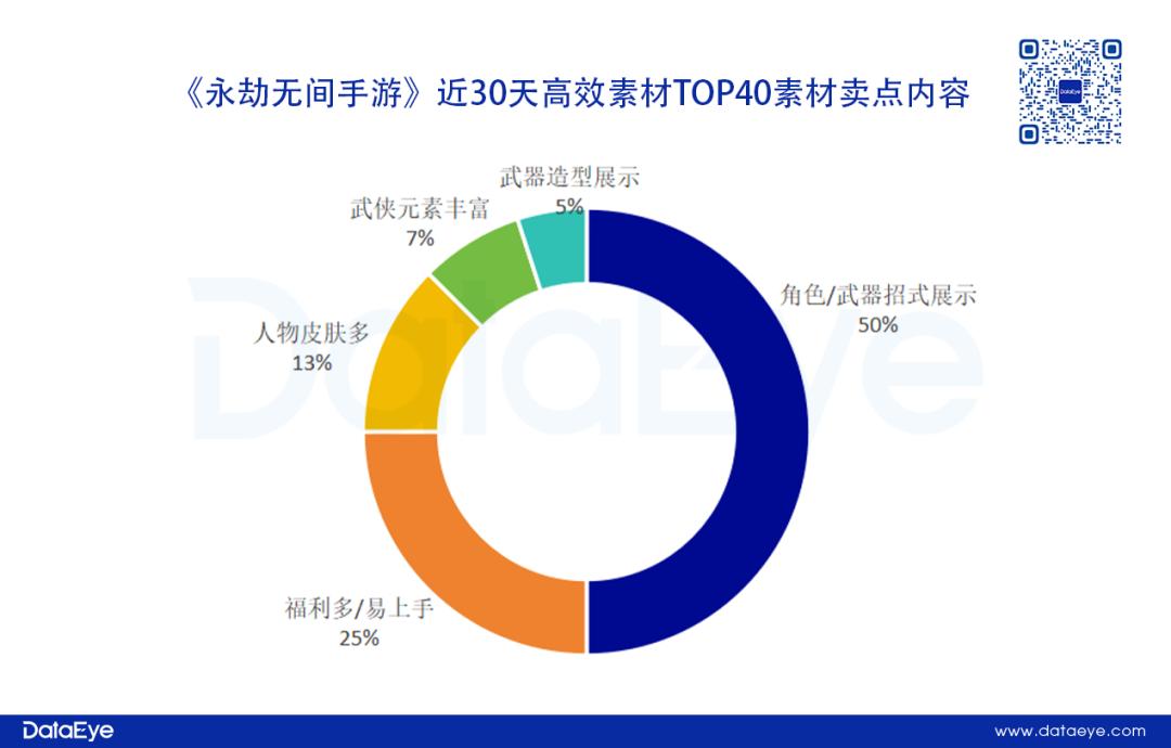 在创意素材层面上,DataEye研究院整理了《永劫无间手游》产品上线爆发阶段的高效素材TOP40,具体数据如下: