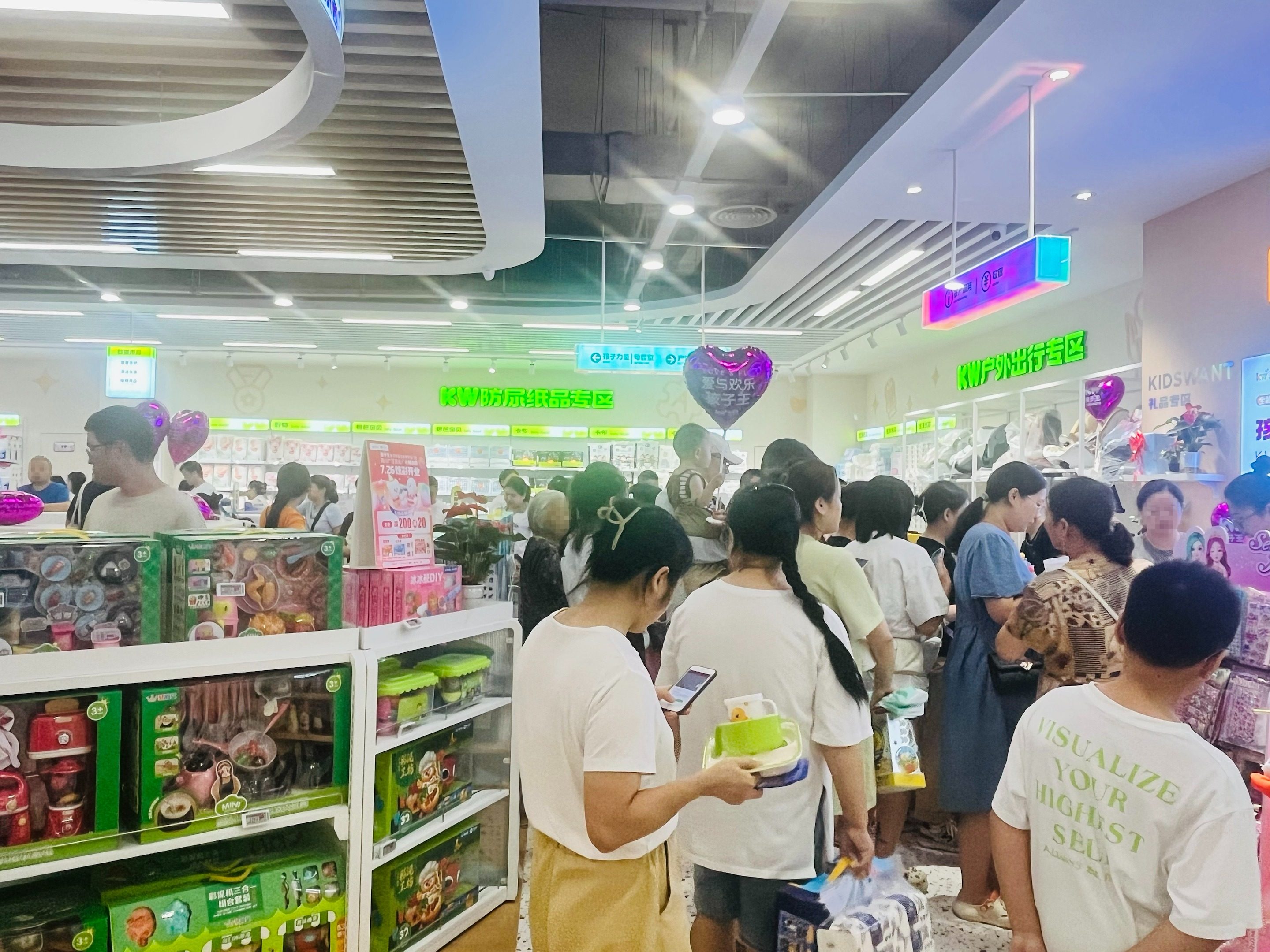 7月26日,在四川广汉百伦广场,一家母婴童精选店焕彩开业,吸引不少当地宝爸宝妈前来购物,进店客人一直络绎不绝。
