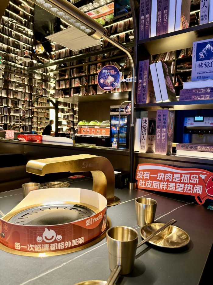 同样以火锅为主业态的呷哺呷哺,早前也布局了烤肉副牌“趁烧”。该品牌于2022年9月推出,根据呷哺集团创始人贺光启当时的介绍,趁烧主打的是“烧肉+酒茶+欢乐”多元化业态,客单价定位250元左右———也是呷哺集团客单价最高的品牌。要容纳下多元化业态,它采用的是大店模式,其在上海第一家门店面积在340平米左右。