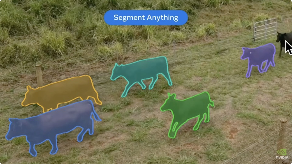 扎克伯格: 好的,嗯,这里面有很多值得探讨的内容。你所谈论的那个Segment Everything模型,我们实际上在SIGGRAPH上展示了它的下一个版本,Segment Everything 2。现在它已经能正常运行了,速度更快了。它现在也能处理视频了。我觉得这些实际上是我考艾岛牧场的牛。顺便说一下,它们被称为马克的小牛,美味的小牛。