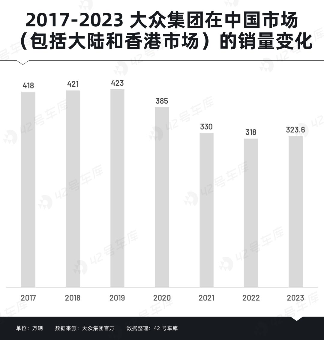 事实上,这样的情况已经发生了。根据官方数据,其实自 2019 年以来,大众在中国市场的销量就连年下降,直到 2023 年才有了十分微小的增长。到了今年上半年,大众在中国市场的销量又同比下降了 7.4%。