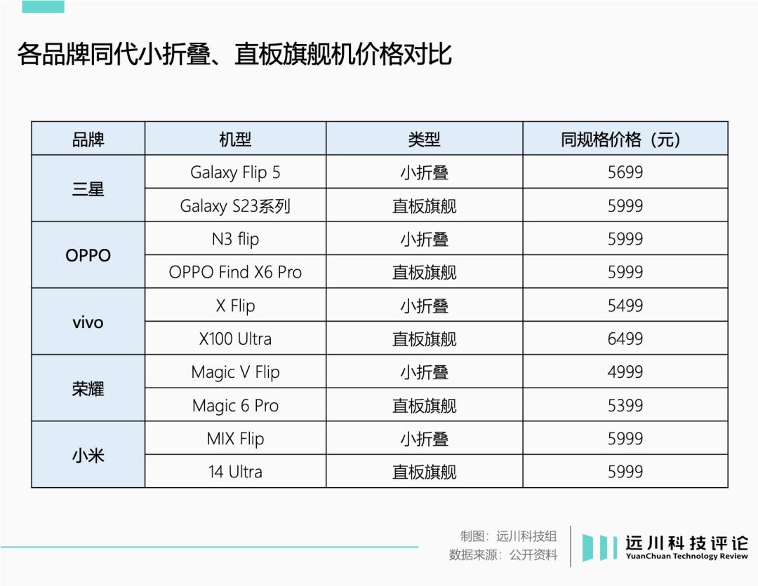 此后,“价格接近旗舰直板机”也成了小折叠手机不成文的定价规律。