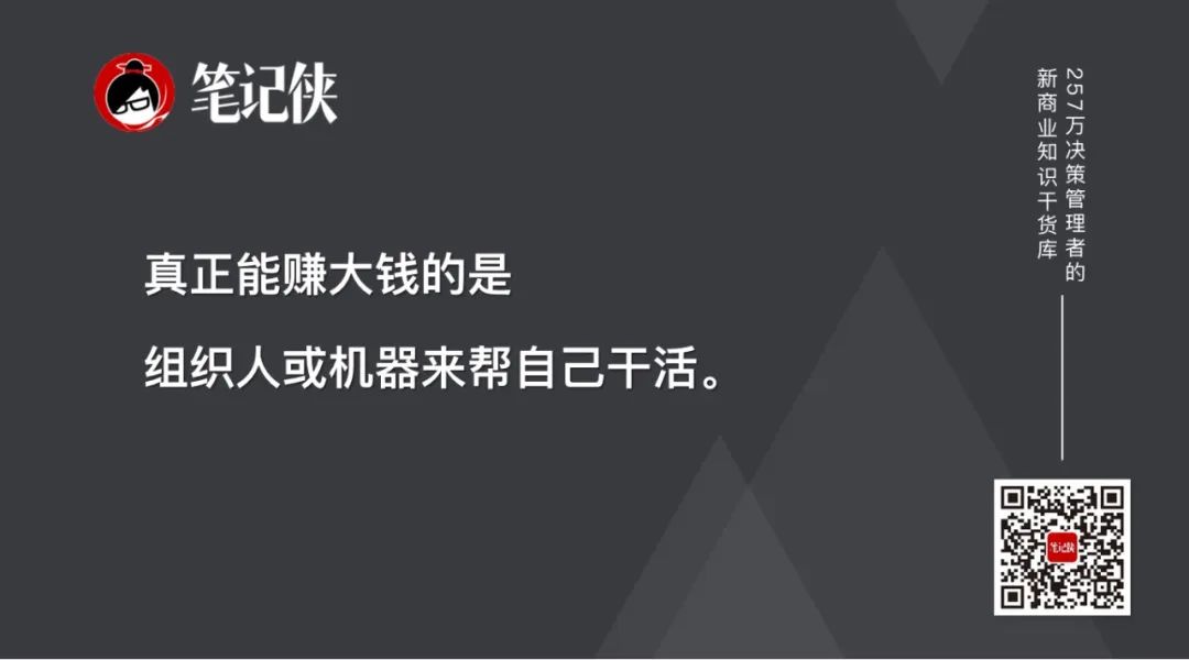 再后来,大家发现真正能赚大钱的是组织人或机器来干活,比如李嘉诚、比尔·盖茨、乔布斯、马斯克等,都成就了庞大的商业帝国。