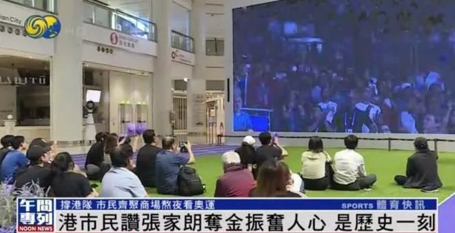 江旻憓夺金后进一步激发港人观赛热情,许多香港商场顺应趋势,深夜仍向市民开放,以便市民在商场内免费观赛。这一方面可以营造更热烈的观赛氛围,另一方面也为市民提供了更舒适、更方便的观赛选择。