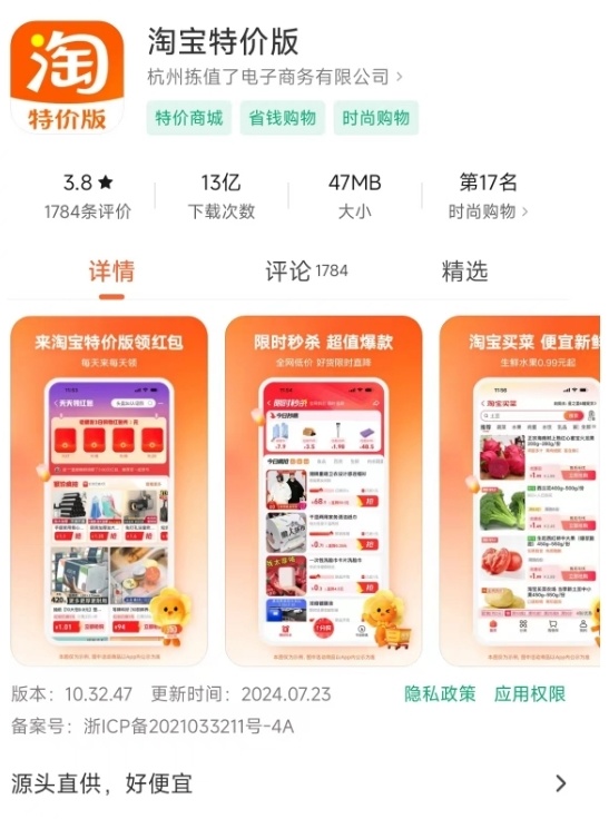 「淘宝特价版」其实也面临同样的困境,虽然压力小于「京喜」,但是其定位却与淘宝小商家直接冲突,有种重复“造轮子”的感觉,这也导致淘宝特价版后续的宣传力度及使用人数一直下滑。