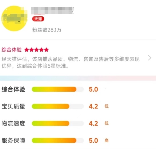 在意识到这一点后,淘宝最终决定推出“店铺体验分”和“商品体验指数”两个新的评级体系,其中店铺体验分主要取决于客服响应速度和售后表现,而商品体验指数则来源于买家对产品的评价。