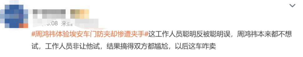 “ 这工作人员聪明反被聪明误,周鸿祎本来都不想试,工作人员非让他试,结果搞得双方都尴尬,以后这车咋卖。 ”