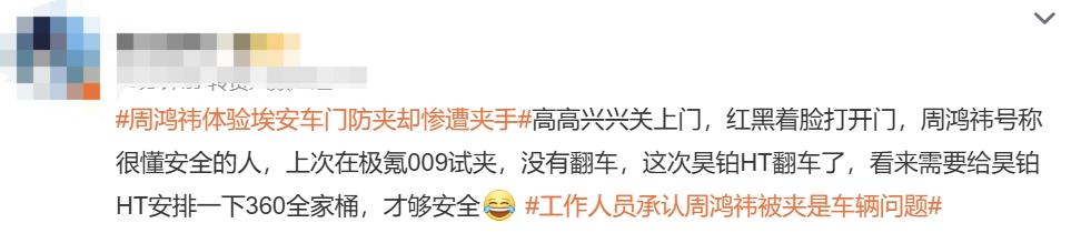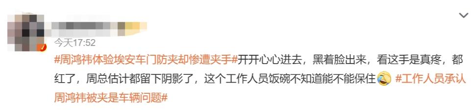 你让我怎么信车门防夹功能?周鸿祎手都被夹肿了