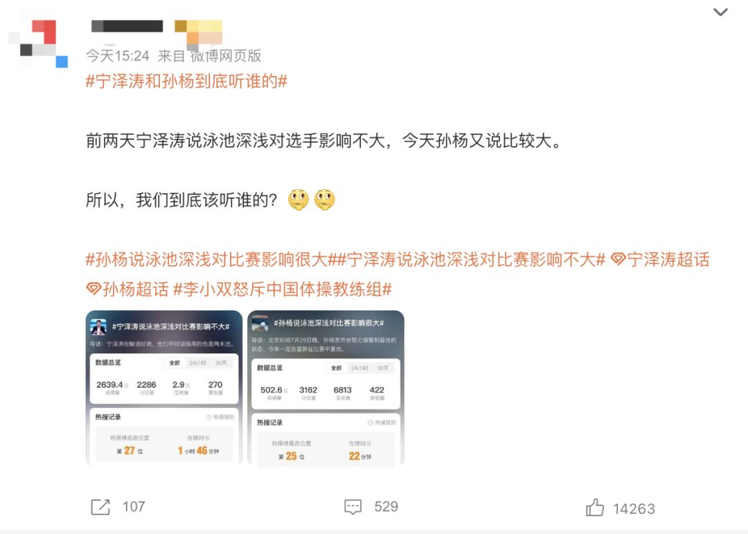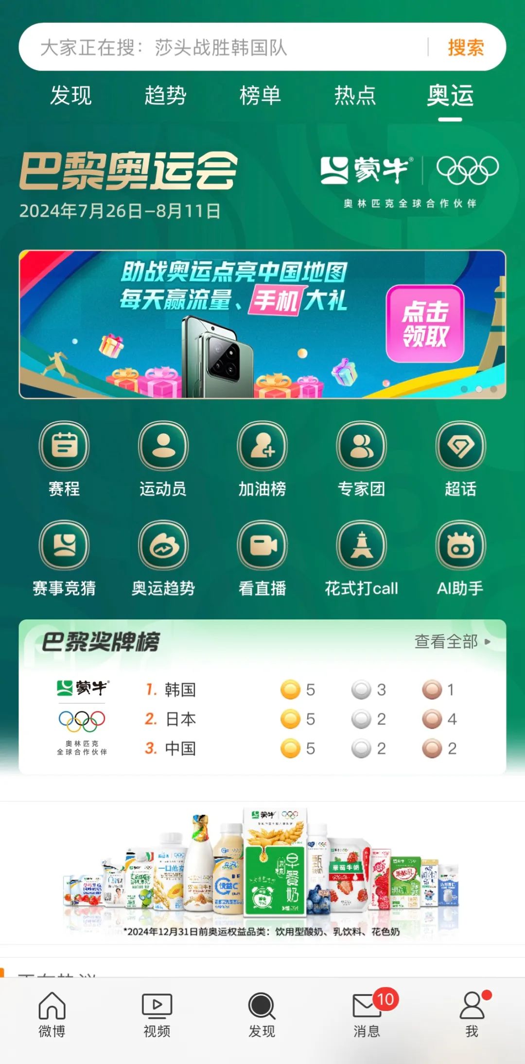 虽然微博本身也设置了“奥运”专场页面,有热门运动员推荐、赛事竞猜等板块,但热搜依然是核心流量场。