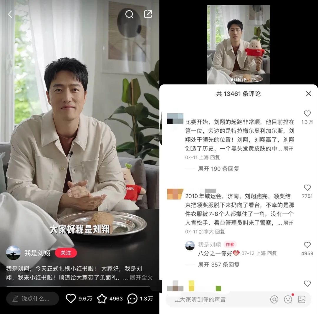 小红书虽然在体育赛事营销中属于后来者,但也奋起直追,打造出圈的营销事件。 奥运开始之前,小红书就邀请刘翔入驻,狠狠吸引了一波回忆杀。